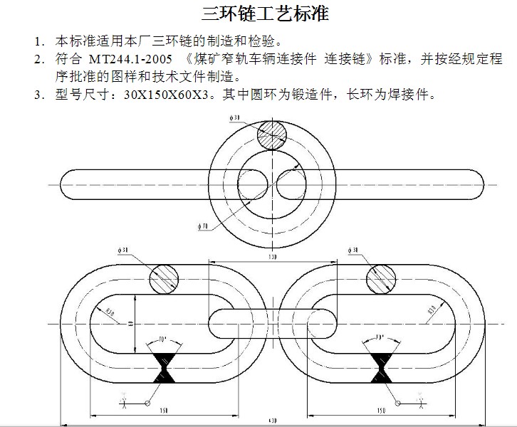 礦車三環(huán)鏈適用于運(yùn)輸煤炭、矸石、物料等各類礦車和林業(yè)木材運(yùn)輸聯(lián)接,在符合《煤礦保安規(guī)程》的前提下也適用于礦山人的聯(lián)接